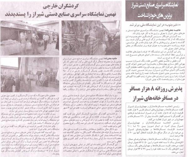 اطلاع رسانی روزنامه خبر جنوب در خصوص برگزاری نهمین نمایشگاه سراسری صنایع دستی مورخ 95.12.21