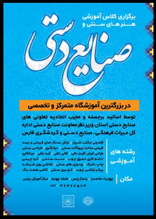 ✅برگزاری مراسم چهارشنبه بازار صنایع دستی در مجتمع آموزش تخصصی صنایع دستی پارس مورخ ۹۶.۲.۲۷ برگزار خواهد شد.از هنرمندان گرامی دعوت ب عمل می آید که در این مراسم حضور بهم رسانید.