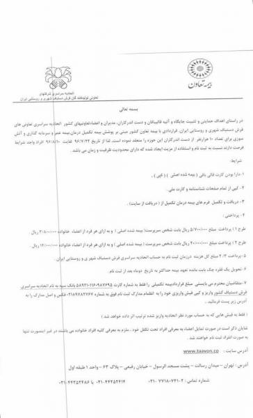 به استحضار هنرمندان و صنعتگران محترم میرساند جهت ثبت نام بیمه تکمیلی به ادرس زیر مراجعه فرمایید. ضمناً تصویر مدارک مورد نیاز نیز حضورتان ارسال میگردد.