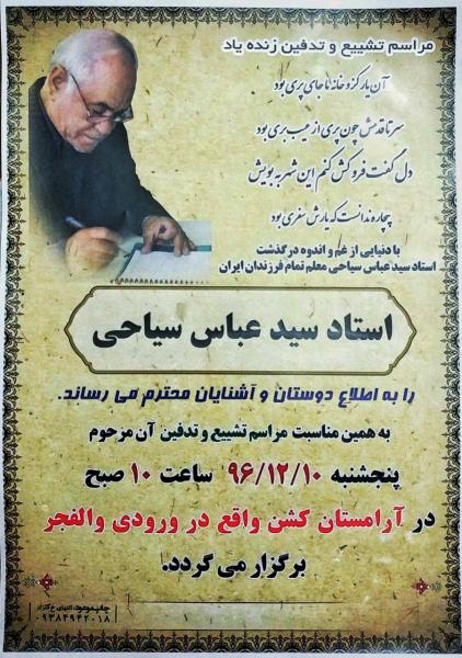⚫️بدینوسیله درگذشت استاد بزرگ جناب اقای عباس سیاحی که عمری در حیطه رنگرزی سنتی قالی هنرنمایی کردند را به تمامی هنرمندان و جامعه هنری کشور تسلیت عرض نموده و از خداوند منان علو درجات را برای ایشان خواستاریم.