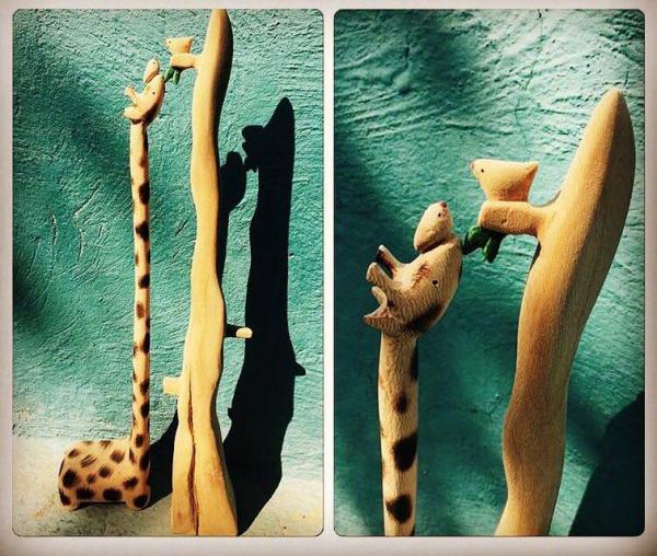 زرافه و درخت چوبی